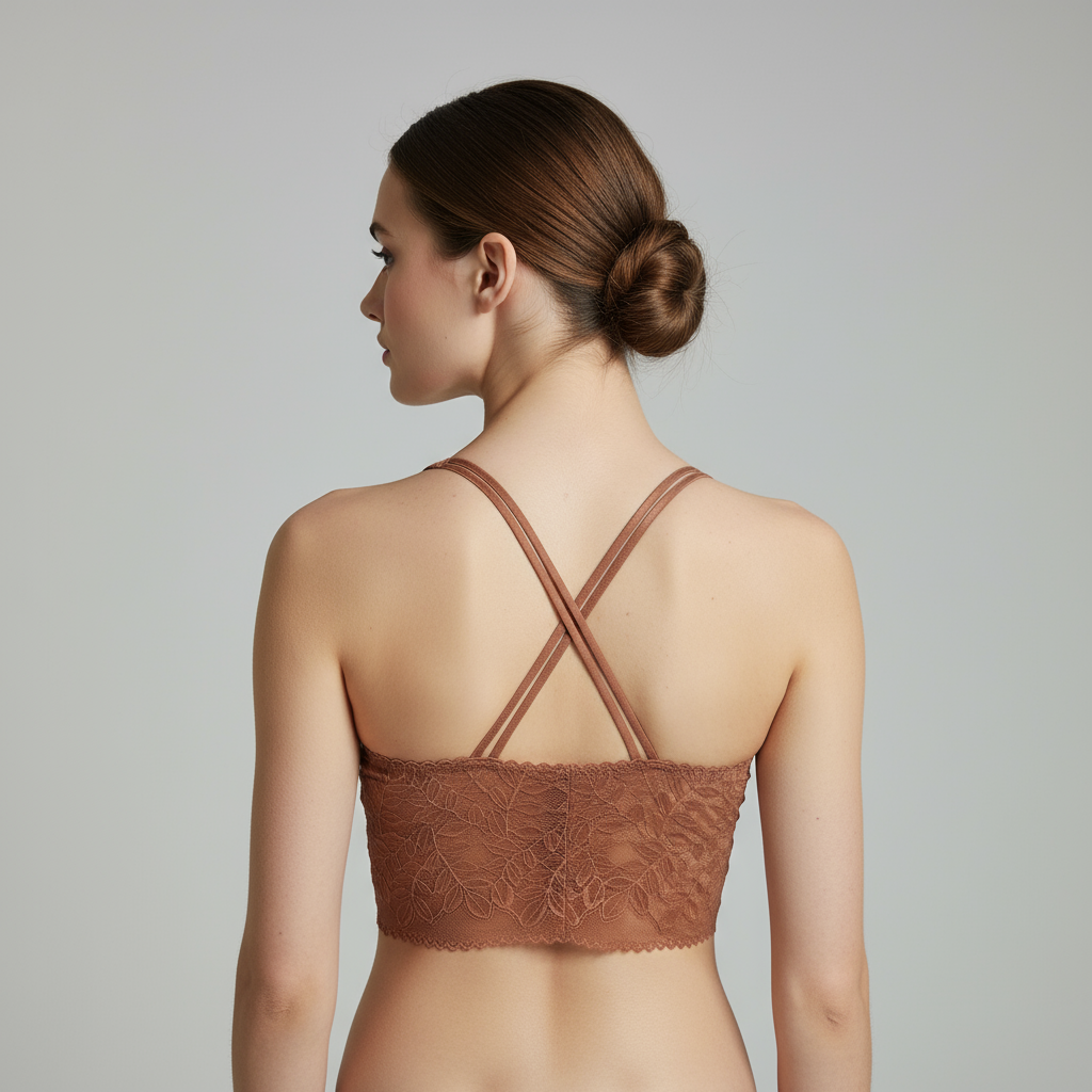 Descubre la sensualidad y comodidad de nuestro top de encaje, un material que brinda frescura y un detalle de sensualidad. Con escote triangular. Este diseño cuenta con un suave elástico que se ajusta delicadamente bajo el busto, proporcionando un soporte cómodo y seguro. Con acabados con curvas elaborados con tecnología corte láser que brinda acabados mas limpios, evitando que se enrolle bajo las prendas o se marquen sobre la piel. Con copas que brindan soporte y ajuste en el busto, los tirantes cruzados en la espalda añaden un toque de estilo, haciendo de este top una elección perfecta para cualquier ocasión. Ideal para sentirte femenina y cómoda todos los días